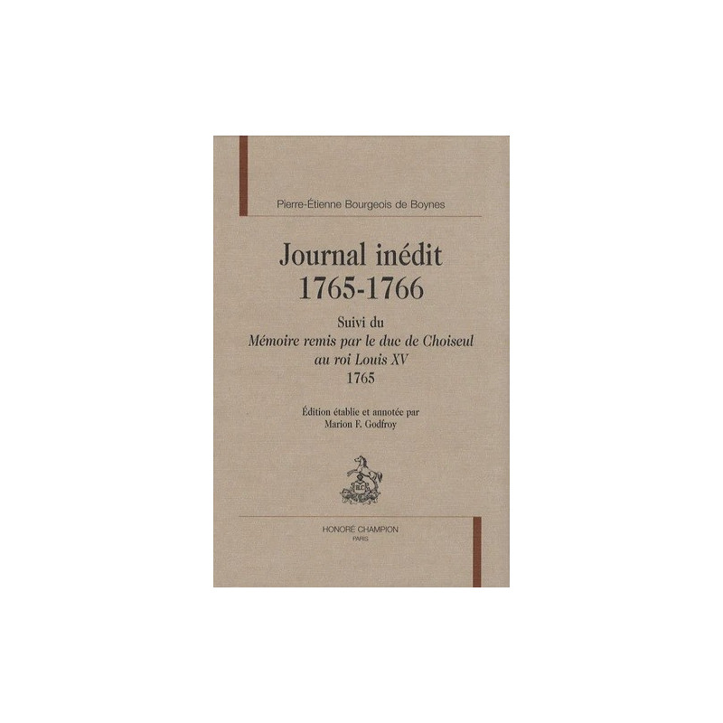 C'est un compte rendu méthodique et détaillé, tenu presque au jour le jour durant treize mois qu'offre Pierre-Etienne Bourgeois de Boynes, conseiller d'Etat à la Cour de Louis XV, futur ministre de la Marine. Dans un récit détaillé et minutieux, l'auteur y rapporte le retour marchandé du chancelier Lamoignon, fait le récit de l'agonie du Dauphin, signale les maladies vénériennes de Sartine, dessine un portrait en creux du roi et de l'exercice de la royauté, retrace le scandale des billets injurieux de l'affaire La Chalotais, ou le fameux discours de flagellation sur lequel se clôt presque cette narration. Enfin, il renseigne sur les fonctionnements des conseils. A feuilleter ce Journal, le lecteur ou l'historien saisit combien la révolte des parlements n'est pas uniforme, quelles sont les inquiétudes des ministres et secrétaires d'Etat, quelles sont leur conception de l'exercice du gouvernement et les luttes que se livrent Choiseul et ses opposants. La richesse de l'index thématique, tout comme celle de celui nominatif, laisse deviner l'importance de ce témoignage. Si la plume n'est pas celle d'un Saint-Simon, Bourgeois de Boynes n'omet rien de ce qui fait la richesse et les malheurs de la France des années 1760. Par son regard unique, par un document inédit et original, le diariste offre ainsi une lecture méconnue du fonctionnement d'un État, qui se voulait, avant tout, moderne. () Discovery, translation, critical annotation and publication of a diary so far out of reach of historians, held by one of the high dignitaries of the State, Pierre Etienne Bourgeois de Boynes, Secretary of State to the Navy under Louis XV. Written in 1765 and 1766, two cardinal years of the rule of Louis XV (demise of the heir apparent Louis Ferdinand, revolts of the parliaments, incessant fights between Choiseul, Bertin and the "devout party", discourse of Flagellation), Pierre Etienne Bourgeois de Boynes takes us into the mysterious workings of the government…