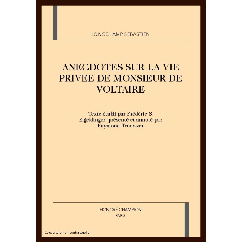 En 1826, Jacques-Joseph Decroix et Adrien Beuchot publièrent, à la suite des souvenirs de Jean-Louis Wagnière, le dernier secrétaire de Voltaire, les " mémoires " de Sébastien Longchamp, qui avait été, de 1746 à 1751, le valet de chambre et copiste du philosophe. Pages importantes, puisque Longchamp éclairait nombre de situations de la dernière période de Cirey, dont il avait été l'unique témoin, auquel tous les biographes de Voltaire ont eu recours. On sait cependant, depuis une trentaine d'années, que Decroix a considérablement modifié les Anecdotes que lui avait confiées Longchamp. Non seulement il a entièrement réécrit des notes dépourvues de toute prétention littéraire, mais il est intervenu à maintes reprises pour aménager ou corriger Longchamp, dont il transforme les modestes " anecdotes " en " mémoires " suivis. Il devenait donc nécessaire de proposer une édition critique du texte original du manuscrit conservé à la Bibliothèque nationale de France, et de la faire suivre d'une édition, également annotée, de la version de Decroix. Raymond Trousson, professeur émérite de l'Université libre de Bruxelles, est l'auteur de nombreux ouvrages consacrés aux grands auteurs du siècle des Lumières.