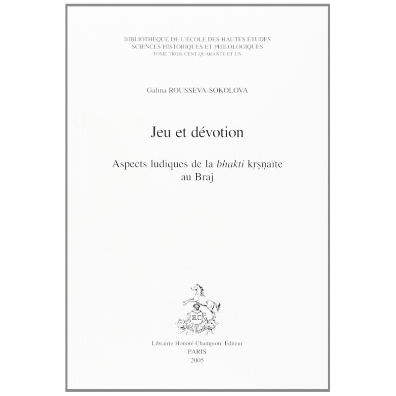 Tous ceux qui ont abordé la bhakti krishnaïte y ont noté la présence d'éléments ludiques. Cette étude essaie d'aller plus loin : il ne s'agit plus seulement de collectionner les preuves de la présence du jeu, mais de vérifier s'il ne détermine pas la dévotion de manière plus générale, s'il est possible de le penser comme faisant partie des structures profondes de la dévotion krishnaïte. Sur la base de la poésie dévotionnelle l'auteur explore divers aspects théologiques et pratiques du culte en faisant du jeu un possible fil unificateur qui permette de penser la bhakti krishnaïte dans son ensemble, en dépit de l'incroyable diversité des phénomènes qui s'y rattachent.