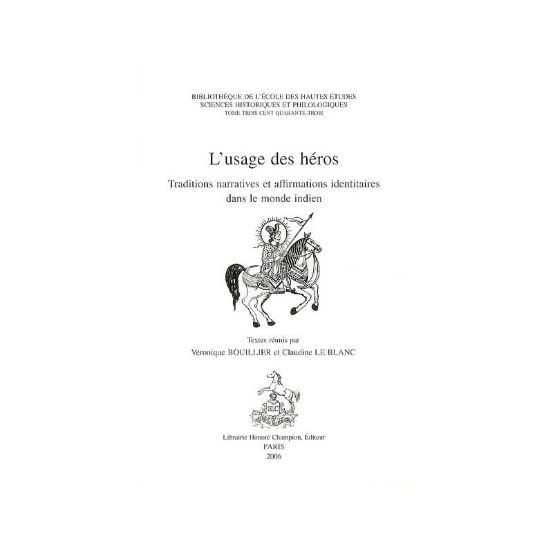 Le volume réunit les travaux menés par l`équipe "Inde médiévale et moderne" de l`École pratique des Hautes Études de 1996 à 2000. Après l`hagiographie en Inde, objet d`une récente publication (Constructions hagiographiques en Inde : entre mythe et histoire, sous la direction de Françoise Mallison, Paris, Honoré Champion, 2001 [BEHE 338]), et alors que la montée du communautarisme en Inde se traduisait par de sanglants affrontements, il a semblé opportun d`élargir la réflexion à l`ensemble des personnages indiens susceptibles de cristalliser l`identité d`une caste, d`une confession ou encore d`une région. En explorant plus spécifiquement la façon dont la littérature en Inde, qu`elle soit mythe, historiographie, témoignage, tradition orale ou encore hagiographie, participe par ses mises en récit des processus identitaires d`affirmation et de valorisation de soi, les différentes contributions proposent un large panorama de la façon dont, du nord au sud de l`Inde, des antiques pierres de héros aux plus récentes publications sectaires, les textes construisent, falsifient, utilisent les figures des héros.
