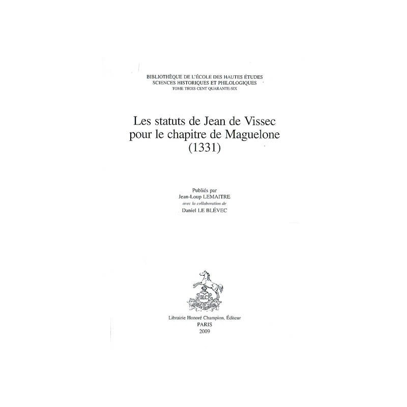 LES STATUTS DE JEAN DE VISSEC POUR LE CHAPITRE DE MAGUELONE (1331)