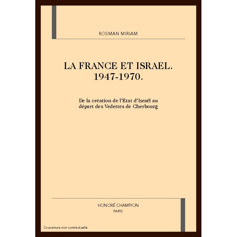 Cet ouvrage se propose d'étudier les relations entre la France et Israël entre 1947 et 1970. Sa première partie porte sur l'établissement des premiers liens, de la naissance d'Israël à la mise en place de relations entre les deux pays. Sa seconde partie s'attarde sur les liens de plus en plus serrés entre les deux États, la crise de Suez, les changements politiques en France, l'influence du retour de De Gaulle au pouvoir et les visites de Ben Gourion à Paris. Sa troisième concerne les années soixante, après l'Indépendance de l'Algérie, la guerre des Six jours et l'embargo français. Pour rédiger cet ouvrage consacré aux premières années des relations franco-israéliennes, l'auteur a bénéficié de l'ouverture récente de nombreux fonds d'archives importants, encore inexploités, et a exhumé nombre de documents inédits. La confrontation des archives des deux pays constitue l'un des principaux atouts de ce travail. De nombreux témoignages de personnalités qui ont joué un rôle primordial dans ces relations et qui ont accepté, pour certaines de sortir de leur réserve, pour d'autres de mettre au grand jour des éléments jugés trop sensibles jusqu'alors ainsi que d'ouvrir leurs archives privées, complètent ce nouvel éclairage. L'auteur, Miriam Rosman, Israélienne, issue d'une famille francophone, est titulaire d'un Doctorat en Histoire de l'Université Paris I-Panthéon-Sorbonne. Ses travaux précédents étaient consacrés à l'analyse du regard posé par la presse française sur la guerre de Suez et sur la guerre des Six jours.