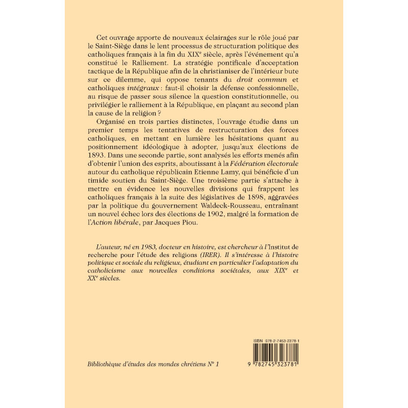 | Collection | BIBLIOTHEQUE D ETUDES DES MONDES CHRETIENS |