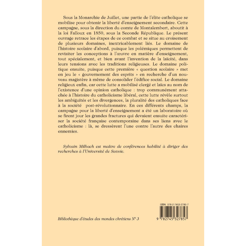 The twenty-year fight over “free” (i.e. religious) secondary education, ending with the 1850 Falloux Law (which authorized Catholic schools), was a largely unsung turning point in the history of French society, during which enduring tensions over education crystallized between Church and State.