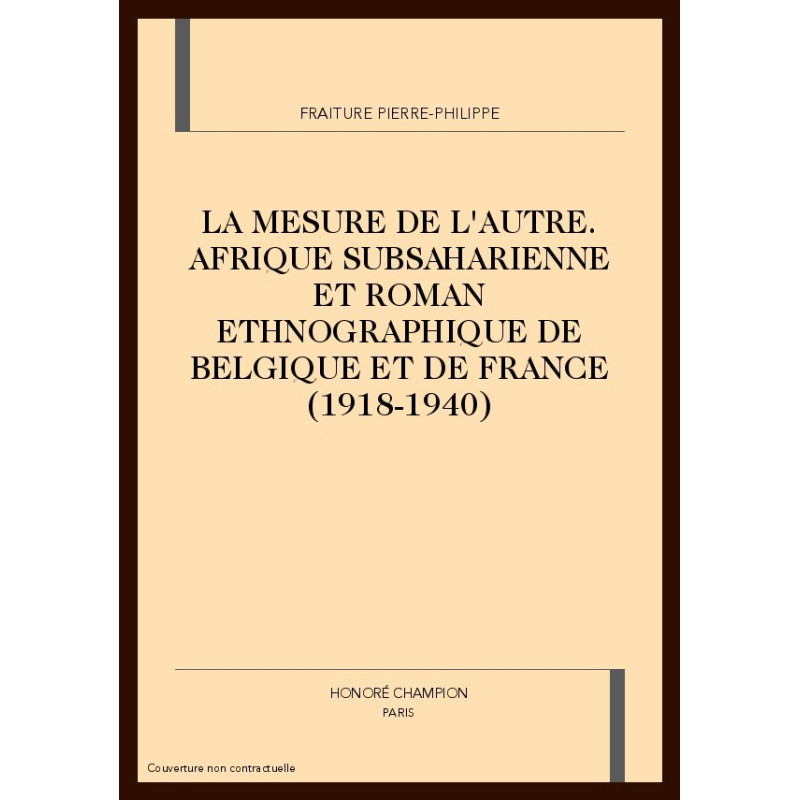 LA MESURE DE L'AUTRE. AFRIQUE SUBSAHARIENNE ET ROMAN ETHNOGRAPHIQUE DE BELGIQUE ET DE FRANCE (1918-1940)