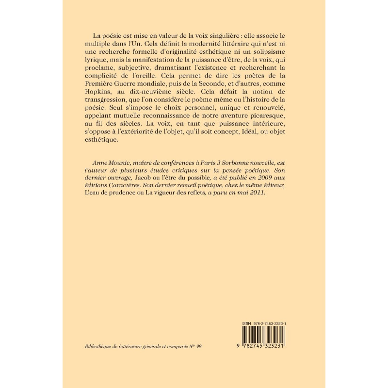 BIBLIOTHEQUE DE LITTERATURE GENERALE ET COMPAREE |