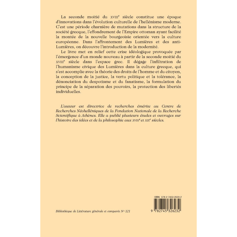 This study highlights the ideological crisis brought about by the infiltration of the Enlightenment’s civic humanism into Greek culture in the late 18th century – a time when post-Ottoman Greek society was experiencing the encroachment of modernity and the rise of a new bourgeoisie inspired by European culture.