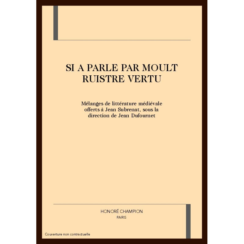 Les organisateurs de ce volume ont souhaité qu'il reflétât les préférences en même temps que la variété des choix du dédicataire. C'est pourquoi ces Mélanges offrent non seulement de nombreuses contributions sur l'épopée médiévale (chanson de geste mais aussi littérature renardienne) et sur les questions religieuses étudiées sous l'angle de la Littérature, mais aussi, entre langues latine et romane, entre XIe et XVIIe siècles, un panorama des genres et des œuvres.