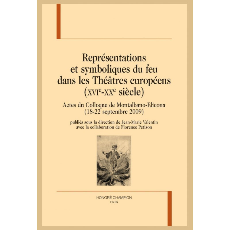 Parmi les quatre éléments, le feu occupe, dans la mythologie (Prométhée), la religion et le théâtre parlé et chanté une place singulière, due aussi, dans la représentation dramatique, à son efficacité spectaculaire. Partant de la nature ambivalente que lui reconnaissent les traditions interprétatives (Bachelard !), les intervenants au Colloque de Montalbano Elicona (Sicile, 2009) en ont examiné les figures majeures depuis le XVIe siècle. Du Baroque religieux à l’extrême pointe des avant-gardes de la fin du XXe siècle, le feu se manifeste dans ses multiples métamorphoses. Destructeur ou régénérateur, il est partout – en Italie, en Espagne, en Pologne, en Angleterre, en Hongrie, en Roumanie, en France, dans le Saint Empire… – intimement lié aux passions et aspirations humaines ainsi qu’à l’essence vivante, spirituelle et matérielle, du monde de la scène.