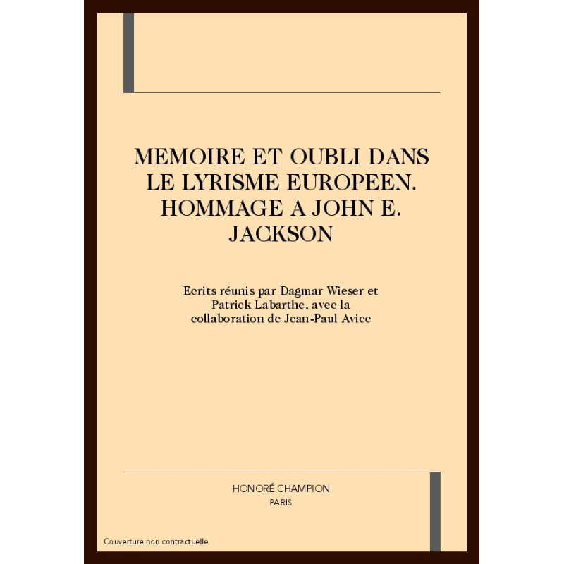MEMOIRE ET OUBLI DANS LE LYRISME EUROPEEN. HOMMAGE Ã JOHN E. JACKSON
