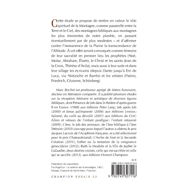 Mountains – from those of the Bible to the tallest peaks on the planet, not to mention a number of more modest ones – serve a spiritual function as gateways between Heaven and Earth. The authorities called to the stand in this study to testify to their transcendence include prophets, saints, writers and artists.