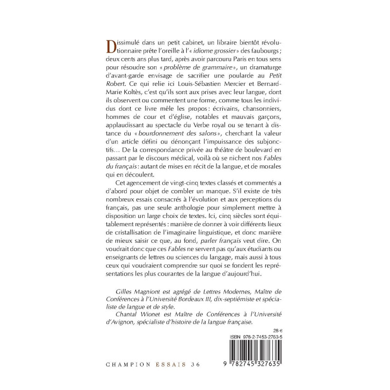Despite an abundance of essays on the matter, until now there had been no single anthology to showcase the evolution and varying perceptions of the French language. This volume gathers 25 texts spread out over 5 centuries (16th-20th), to help the reader get a better grasp of what speaking French actually means.