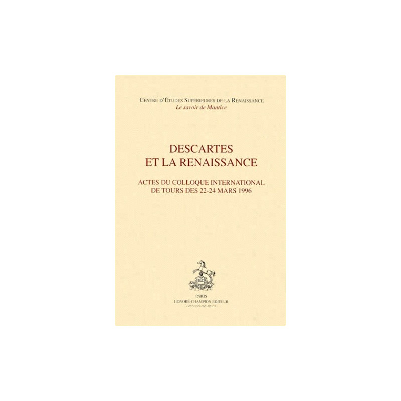 Depuis les thèses d’Étienne Gilson sur Descartes, les références de la pensée cartésienne à la scolastique ont été particulièrement explorées, mais la relation de Descartes à la philosophie renaissante est restée plus méconnue. À l’occasion du quatrième centenaire de la naissance du philosophe en Touraine, il est donc apparu nécessaire de faire le point sur la situation du projet cartésien en regard de la philosophie de la Renaissance.