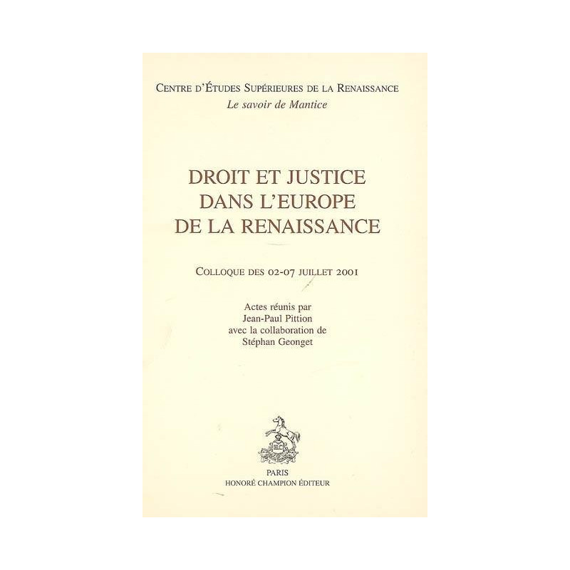 DROIT ET JUSTICE DANS L'EUROPE DE LA RENAISSANCE