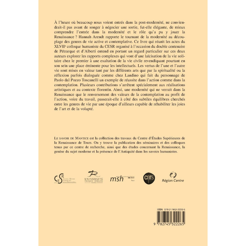 On the occasion of the double centennial of Petrarch and Alberti, these proceedings focus on Alberti’s and Petrarch’s ideas of humanism.