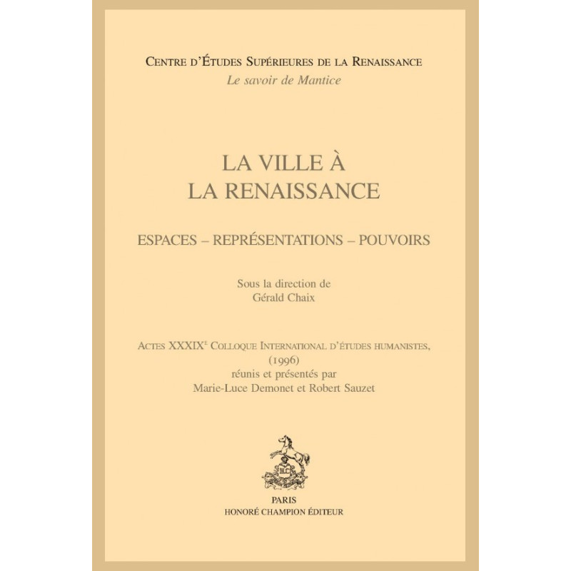 LA VILLE A LA RENAISSANCE ESPACES - REPRESENTATIONS - POUVOIRS