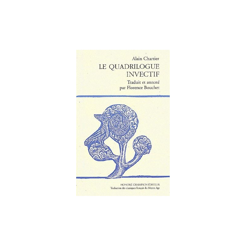 Bien injustement relégué aujourd'hui dans l'ombre, " maistre " Alain Chartier, secrétaire du Dauphin puis du roi Charles VII, fut jusqu'au XVIe siècle l'un des écrivains les plus prestigieux du Moyen Âge. Le Quadrilogue invectif, écrit en 1422, représente un tournant décisif dans la carrière poétique de Chartier, où la mélancolie supplante l'insouciance courtoise à cause d'une actualité désastreuse. Il met en scène un débat houleux entre quatre personnages : France incite le Peuple, le Chevalier et le Clergé à s'unir pour défendre le royaume déchiré par la Guerre de Cent ans et par la discorde civile. Avec ce texte en prose inspiré par le souffle oratoire des Anciens, Alain Chartier signe l'un des premiers manifestes patriotiques de l'histoire de France et offre un éloquent témoignage sur une époque de mutation sociale et littéraire : passage de l'État féodal à la Nation moderne, critique des trois ordres de la société, remise en question des idéaux chevaleresques glorifiés par la littérature courtoise, essor de la pensée humaniste, avènement de l'écrivain " engagé ".