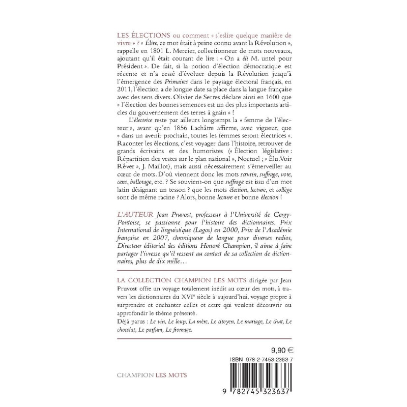 This work explores the different meanings of the word election. It explains its meaning throughout history and analyses associated expressions, some of which are no longer in use.