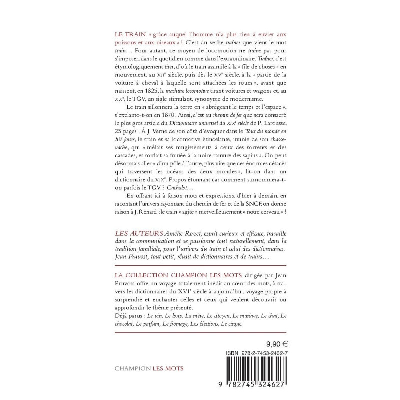 The word train is derived from the verb trainer. Etymologically speaking, trainer is derived from tirer –- which means to pull. This dictionary dives into the universe of the railway and offers an abundance of words and expressions related to trains.