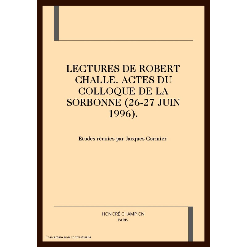LECTURES DE ROBERT CHALLE. ACTES DU COLLOQUE DE LA SORBONNE (26-27 JUIN 1996).