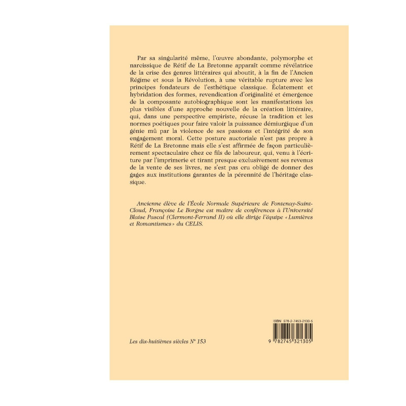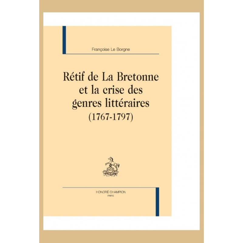 This study focuses on the French novelist Rétif de la Bretonne and the crisis of literary genres between 1767 and 1797.
