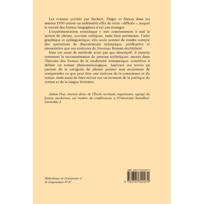| Collection | BIBLIOTHEQUE DE GRAMMAIRE ET DE LINGUISTIQUE |