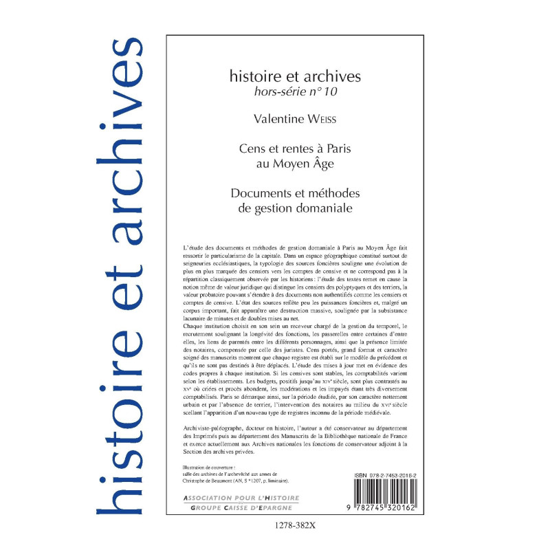 CENS ET RENTES A PARIS AU MOYEN AGE