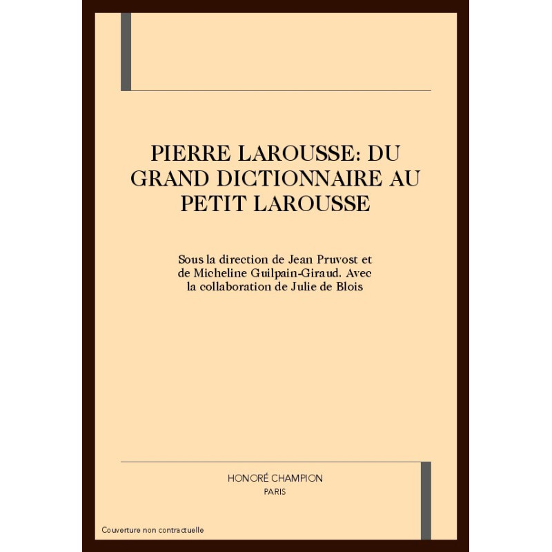 Cette synthèse a pu être réalisée grâce aux contributions de spécialistes incontestés réunis lors du Colloque international de Toucy organisé en mai 2000 par Mme Guilpain-Giraud, Présidente de l'Association Pierre Larousse. Un telle renaissance des études laroussiennes est contemporaine de la parution aux éditions Champion électronique d'un DVD-ROM du Grand Dictionnaire universel du XIXe siècle, précédé d'une longue introduction rédigée par Jean Pruvost, qui a également dirigé et préfacé l'ouvrage ici présenté.
