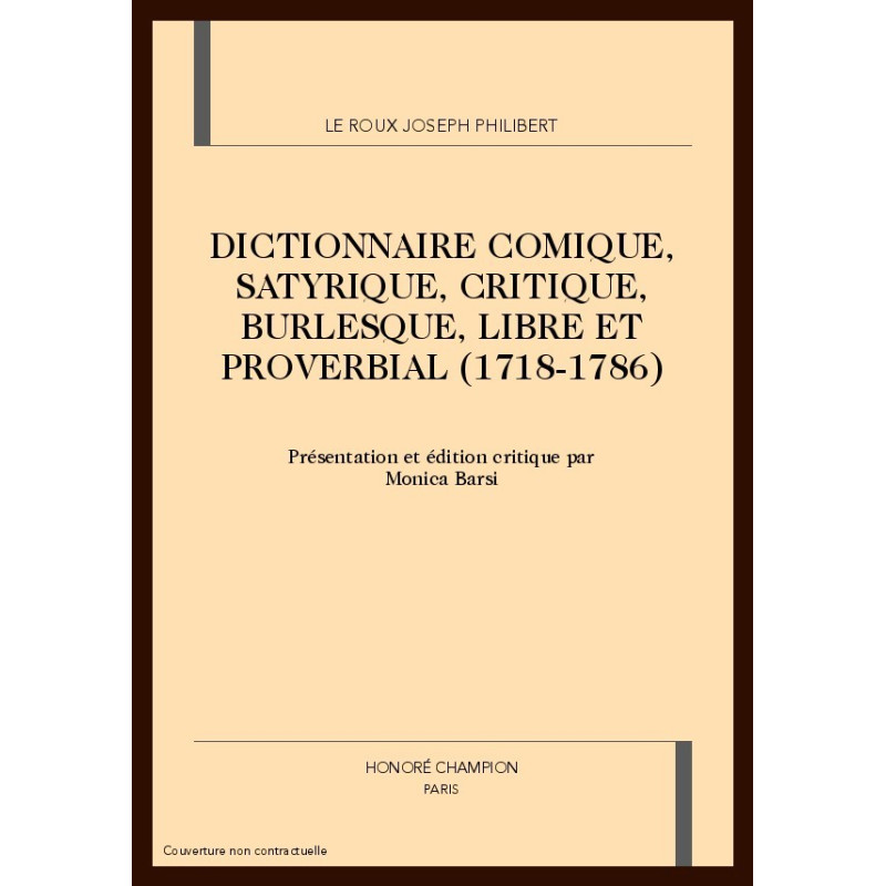 DICTIONNAIRE COMIQUE, SATYRIQUE, CRITIQUE, BURLESQUE, LIBRE ET PROVERBIAL (1718-1786)