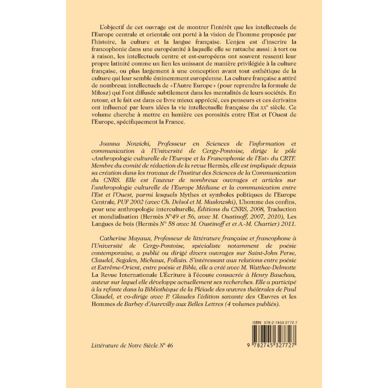 L’objectif de cet ouvrage est de montrer l’intérêt que les intellectuels de l’Europe centrale et orientale ont porté à la vision de l’homme proposée par l’histoire, la culture et la langue française. L’enjeu est d’inscrire la francophonie dans une européanité à laquelle elle se rattache aussi : à tort ou