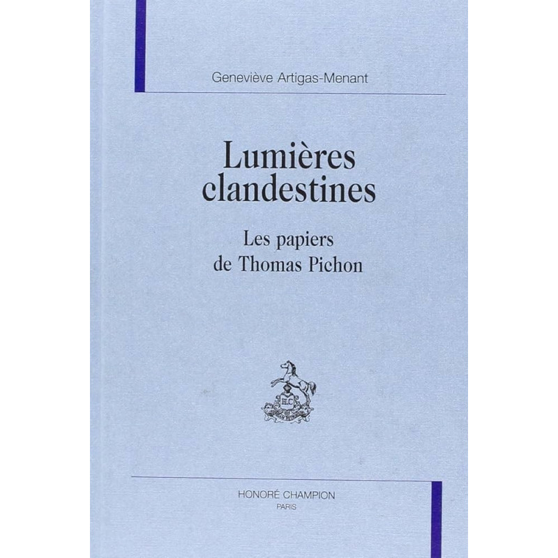 Depuis les travaux de Lanson en 1912 et de Wade en 1938, aucune découverte n'avait apporté un éclairage aussi neuf sur l'ensemble du phénomène des manuscrits philosophiques clandestins dont le rôle capital dans la conception et la diffusion des idées des Lumières ne fait plus de doute. Les papiers de Thomas Pichon (1700-1781), extraits de lectures, copies de travail, lettres, listes de manuscrits et de livres, catalogues de bibliothèques complètent une collection exceptionnelle de manuscrits. Ils constituent un gisement brut où les écrits philosophiques voisinent avec les vestiges de toute une vie du XVIIIe siècle, sans avoir été soumis à aucun partage, aucune censure, aucune dispersion volontaire. Conservés au même endroit depuis 1784, tout juste inventoriés dans les grandes lignes, mais jusqu'à maintenant ni triés, ni interprétés, ils livrent un témoignage d'une authenticité indiscutable. Une minutieuse enquête, totalement neuve, appuyée sur des recherches d'archives, reconstitue le milieu social et intellectuel dans lequel a vécu l'étonnant copiste et collectionneur qui les a légués à la condition absolue qu'ils ne soient pas dispersés. Les relations et la correspondance de Thomas Pichon avec de nombreux aventuriers, en particulier Jean Gallatin, Maubert de Gouvest, John Cleland, Marie Leprince de Beaumont, sa femme ou maîtresse, éclairent le personnage et ses idées: un libertin, un citoyen du monde sans autre règle que sa raison naturelle, un "antisuperstitieux" passionné par les questions philosophiques et reli-gieuses. De cette passion témoignent surtout sa bibliothèque et sa collection de manuscrits philosophiques clandestins présentés et analysés en détail. Le catalogue de ses livres, publié ici intégralement pour la première fois, constitue un document exceptionnel sur la lecture au XVIIIe siècle. -L'exemple de Pichon permet de préciser le rôle des lecteurs, copistes et collection-neurs.
