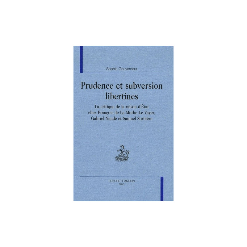 Cette étude propose de s'arrêter sur la pensée politique de trois libertins du début du XVIIe siècle, à partir de leur réinscription dans les discussions contemporaines sur la raison d'État qui constitue un véritable phénomène éditorial depuis la fin du XVIe siècle. Concernant l'historiographie sur le libertinage, cet ouvrage revient sur la soi disant adhésion de ces libertins à la monarchie de leur temps, pour montrer à l'inverse qu'ils ont porté sur la politique un regard tout aussi critique que sur la religion. Concernant les liens entre littérature et philosophie au XVIIe siècle, l'approche proposée ici consiste à analyser le libertinage comme une écriture non pas thématique mais topique, qui s'inscrit dans des genres préexistants (en l'occurrence celui de la raison d'État) pour les détourner de leur signification première. L'ensemble des analyses est lui même articulé autour de la notion de prudence, dont les trois aspects politique, éthique et esthétique, fournissent à cette étude sa structure et sa progression.