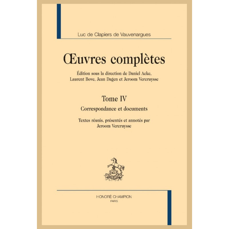 Depuis un siècle et demi et l’édition Gilbert (1857), les éditions de Vauvenargues sont incomplètes et fautives. Malgré l’incendie du Louvre lors de la Commune, il existait des copies authentiques des écrits de Vauvenargues et depuis des inédits souvent autographes ont été découverts. Sous la direction conjointe de quatre spécialistes français et belges, D. Acke, L. Bove, J. Dagen et J. Vercruysse, cette nouvelle édition complète et critique voit le jour après des années de recherches. Le présent tome IV qui comprend la correspondance de Vauvenargues, augmentée d’une centaine de lettres et de documents relatifs à sa famille et à sa succession, est le fruit des travaux de Jeroom Vercruysse. Cette correspondance avec Victor de Mirabeau, Jules de Saint-Vincens, et Voltaire, abonde en détails biographiques mais constitue aussi le laboratoire de la pensée de Vauvenargues. Les documents relatifs à la famille et au décès du jeune écrivain sont entièrement inédits. Ce volume présente en outre une bibliographie scientifique des éditions anciennes et détruit la légende des portraits (tous faux) de Vauvenargues.