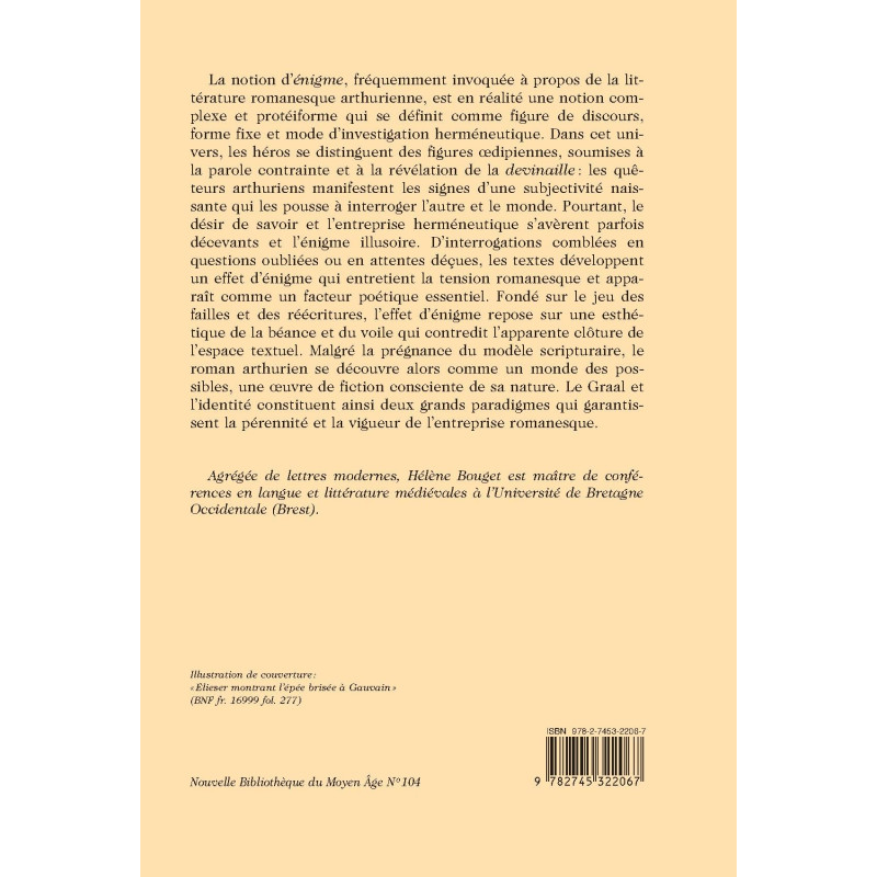 This study looks at the complex notion of enigma in Romanesque Arthurian literature of the 12th and 13th century.