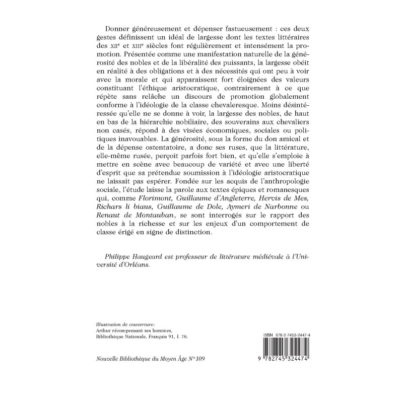 Giving and spending liberally were central to the nobility’s so-called largesse – less a genuine display of generosity than a sly economic, social and political ruse. Epic and Romanesque literature tackled it more freely than might have been expected from genres supposedly deferential to aristocratic values.