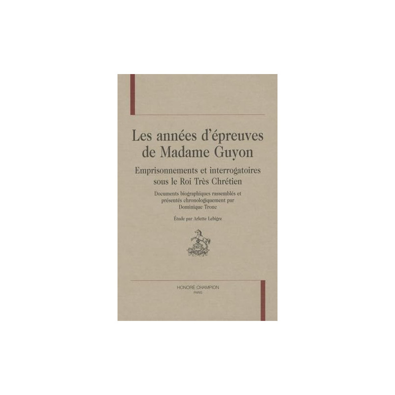 Lors de la " querelle du quiétisme ", Mme Guyon (1647-1717) fut l'animatrice du cercle spirituel auquel appartint Fénelon. Ce dernier résista aux pressions de Bossuet mis en action par Mme de Maintenon. Parallèlement, une procédure judiciaire fut alors engagée contre la forte tête du cercle. Fait exceptionnel, nous sont parvenus neuf interrogatoires conduits par La Reynie, lieutenant général de police de Paris de grande expérience. Ils furent soigneusement enregistrés devant greffier, dans l'espoir déçu d'y prouver la culpabilité de la prévenue - ce qui eût entraîné la perte immédiate des quiétistes. Aux pièces témoignant du bon fonctionnement de la police du Roi Très Chrétien - parfois de ses hésitations face à une défense opiniâtre - et aux procès-verbaux des interrogatoires, s'ajoutent des confrontations avec un confesseur imposé et avec l'archevêque de Paris : ce dernier se déplacera jusqu'en prison par obéissance totale à la volonté royale. Ces épisodes sont relatés par Mme Guyon dans ses témoignages autobiographiques ainsi que dans une correspondance qui se maintint au début de sa " descente en enfer ". Le caractère dur des pièces d'archives et de témoignages de l'intéressée, que les érudits récents n'ont pas prise en défaut, est comparable aux récits abrupts de survivants d'internements policiers plus récents. Cette contribution sur les conditions carcérales au Grand Siècle constitue aussi l'étude biographique manquante couvrant la seconde partie de la vie de Mme Guyon (1686 à 1717). Elle défriche un terrain vierge en tentant d'établir une chronologie sûre autour de laquelle les témoignages s'éclairent mutuellement. Les années d'épreuves de Mme Guyon auront comporté trente-huit interrogatoires en cinq lieux différents. Dominique TDominique Tronc a assuré les éditions critiques de nombreuses œuvres de Mme Guyon. Il étudie les filiations spirituelles au XVIIe siècle. Arlette Lebigre est spécialiste de la justice sous l'Ancien Régime.