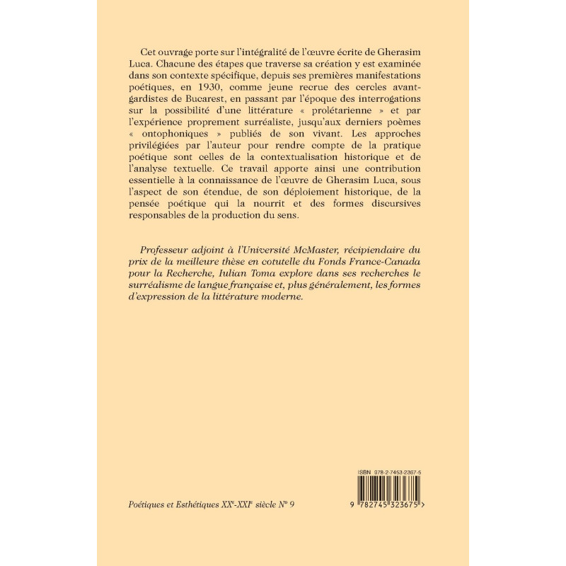 | Collection | POETIQUES ET ESTHETIQUES XXE-XXIE SIECLE |