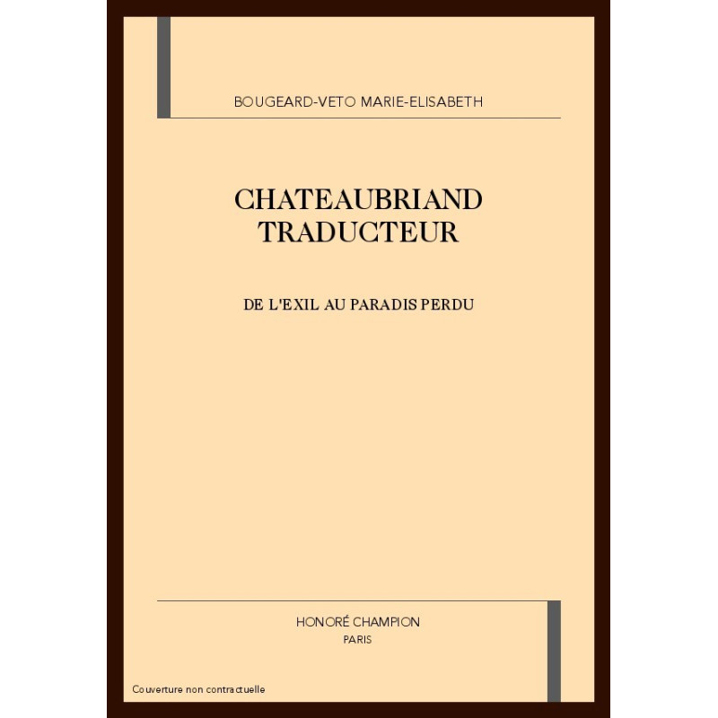 Chateaubriand traducteur: l'association de ces deux mots surprend. Pourtant, le fait traductif tient dans la vie de Chateaubriand un rôle essentiel: des fragments traduits en exil à la grande traduction de Paradise Lost de Milton en 1836 se dévoile un chemin de quête de soi et quête de foi, aux retentissements profonds sur l'œuvre propre de l'écrivain.