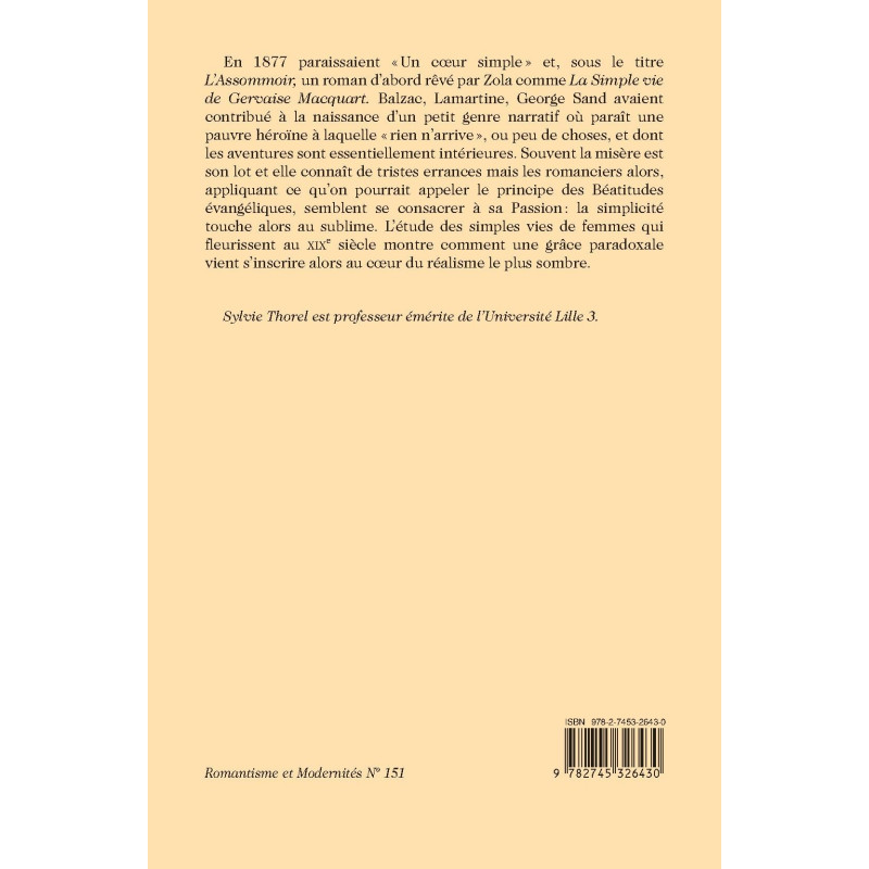 Balzac and Zola are but two of the 19th-century authors who created the small-scale narrative genre of the female “simple life” – featuring a poor, wandering heroine to whom very little happens, except internally. These novels are marked by the emergence of the Sublime within the bleakest forms of realism.