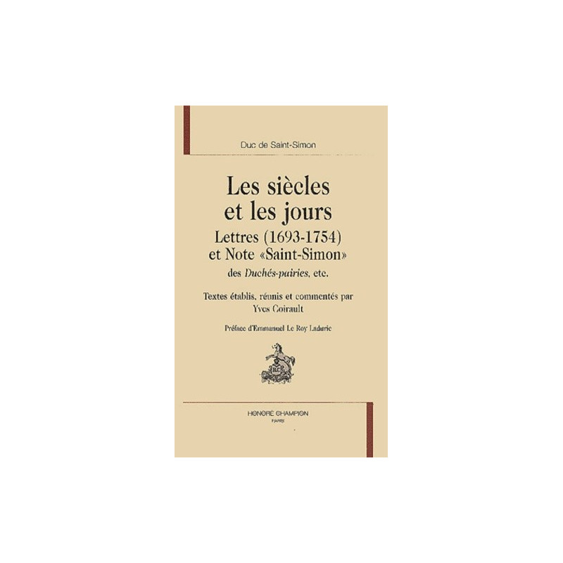 LES SIECLES ET LES JOURS. LETTRES (1693-1754) ET NOTE " SAINT-SIMON " DES DUCHES-PAIRIES.