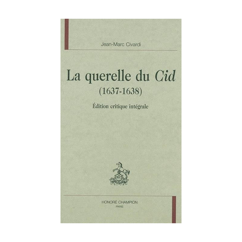 La querelle du Cid s'est déroulée pendant près d'un an et a vu s'affronter des dramaturges, des polémistes et de nombreux libellistes anonymes. Cette querelle littéraire importante du XVIIe siècle a joué un rôle majeur dans la formation des règles théâtrales (inventio et dispositio, vraisemblance, bienséance, merveille) et la carrière de Corneille. Ses enjeux sont également d'ordre linguistique (création de l'Académie française, remarques de style), critique (place des doctes, évolution de la " censure " littéraire), social (rôle du public, statut de l'écrivain). Si cette polémique clôt pratiquement le débat entre irréguliers et réguliers, au profit de ces derniers, elle amorce aussi d'autres réflexions sur le sublime et la dispute entre anciens et modernes. Cette édition critique est la première depuis plus d'un siècle à proposer l'ensemble des textes de la querelle, accompagné d'une annotation nouvelle, et à faire le point sur les recherches entreprises.