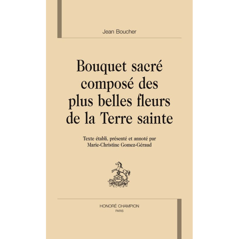 Si l'œuvre de Jean Boucher est aujourd'hui tombée dans l'oublie, le Bouquet sacré des fleurs de la Terre sainte, publié au Mans en 1614, fut sans aucun doute le bestseller de la littérature de pèlerinage jusqu'à la Révolution. Il figurera encore dans les bibliothèques d'écrivains voyageurs comme Chateaubriand, au XIXe siècle. Homme de culture - il connaît le grec et l'hébreu, prédicateur de renom, le franciscain Jean Boucher propose une œuvre foisonnante, imprimant au genre du pèlerinage une allure nouvelle, au moment même où la Contre-Réforme stimule la renaissance de ces ouvrages : livre de méditation dévote qui use habilement de tous les ressorts de la rhétorique, le Bouquet sacré est aussi un livre d'aventures. S'il fait la part belle aux leçons tirées de l'expérience, le voyageur, dont le regard sur les pays orientaux reflète des préjugés bien installés dans les mentalités de l'époque, s'arrête aussi avec une distance amusée sur ses tribulations en terre infidèle. Le pèlerin s'accommode désormais du statut d'homme ordinaire et, ce faisant, laisse son écriture prendre un tour plus personnel.