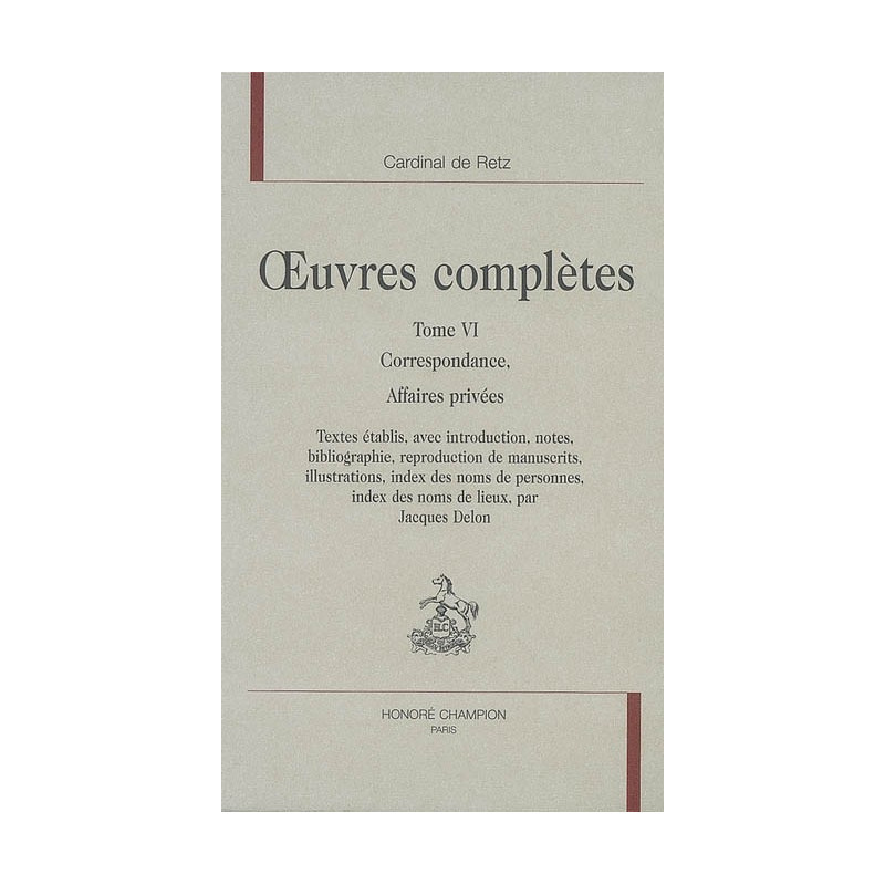 La Correspondance de Retz sur ses Affaires privées comporte quatre parties distinctes. La première concerne ses recommandations à l'abbé Paris, au début de son installation à Commercy. Il tentait alors de concilier son goût du faste avec un lourd passif financier. La seconde, plus abondante, se rapporte aux directives envoyées à La Fons sur l'administration temporelle de l'abbaye d e Saint-Denis et les sacrifices consentis pour désintéresser d'innombrables créanciers, La troisième se caractérise par une extrême variété de destinataires et de sujets : civilités d'usage, sollicitations diverses, lettres de recommandation. La dernière regroupe des lettres (inédites) d'amis, de serviteurs, ou de créanciers. Cette Correspondance présente un intérêt biographique primordial, par comparaison avec le personnage de grand seigneur qu'il campe dans ses Mémoires. Elle fournit de précieuses indications sur sa personnalité singulière, Son art épistolaire offre une étonnante diversité de styles.