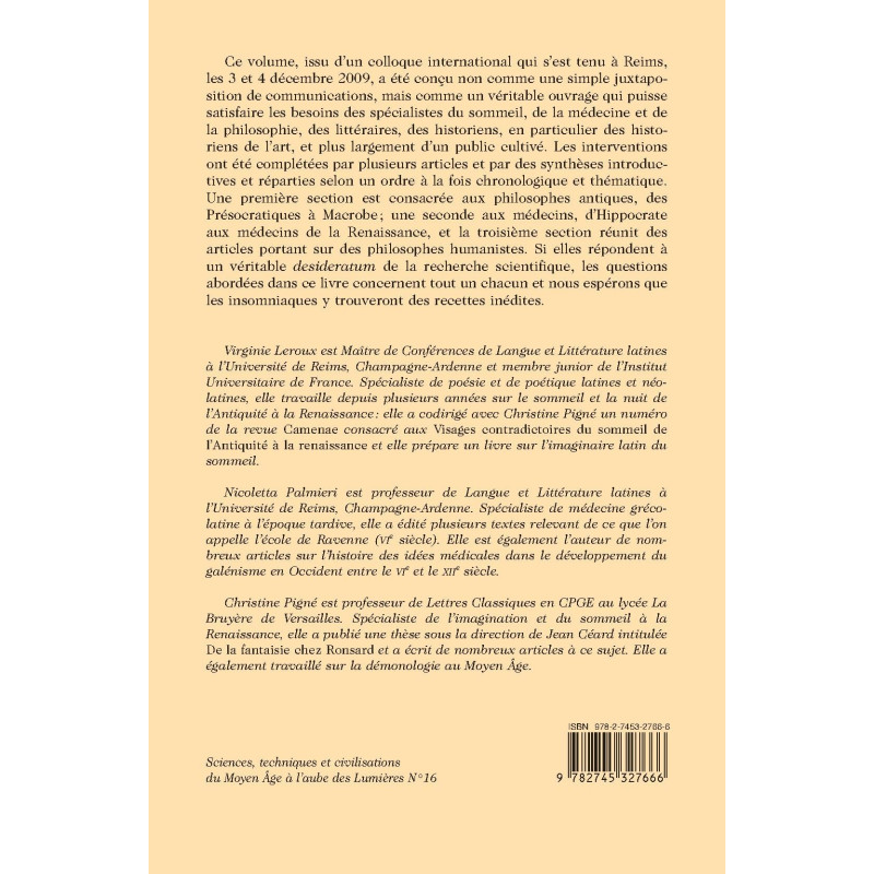 Part I of this collection of papers on the philosophical and medical approaches of sleep from Antiquity to the Renaissance is devoted to ancient philosophers, from the Presocratics to Macrobius. Part II is devoted to medical doctors, from Hippocrates to the Renaissance, and Part III to humanist philosophers.