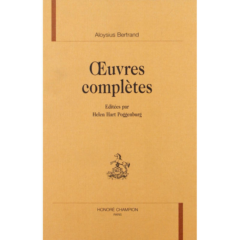 Aloysius Bertrand occupe une place primordiale dans la genèse du poème en prose moderne. Un seul livre, Gaspard de la Nuit, a rendu "fameux" celui que Baudelaire appela son "mystérieux et brillant modèle" pour Le Spleen de Paris. Or, Bertrand a écrit des vers, des récits, des pièces de théâtre et des articles de critique et de polémique. Vu sa place privilégiée dans l'histoire de la poésie française, une édition critique de cette œuvre s'imposait. Pour la première fois, tous ses écrits disponibles et sa correspondance générale se trouvent réunis. Cette édition comporte, en outre, des documents iconographiques, 81 lettres traitant du poète et de son œuvre écrites après sa mort, une chronologie détaillée et une riche bibliographie chronologique indexée. Le manuscrit de Gaspard de la Nuit, réapparu en 1992 après des décennies, a été revu, ainsi que d'autres manuscrits déjà publiés. Cette relecture a permis la mise à jour des travaux de base, déjà anciens (1925, 1926). La correspondance générale comporte 70 lettres de Bertrand, de ses correspondants et de tierces personnes à son égard. L'édition révèle de nombreux inédits. Cette publication d'ensemble devrait jeter les bases de la résurrection définitive de ce grand poète trop peu connu et donner un nouvel essor aux études sur lui.