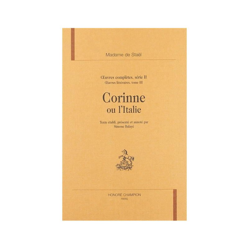 OEUVRES COMPLETES SERIE II OEUVRES LITTERAIRES TOME III. CORINNE OU L'ITALIE