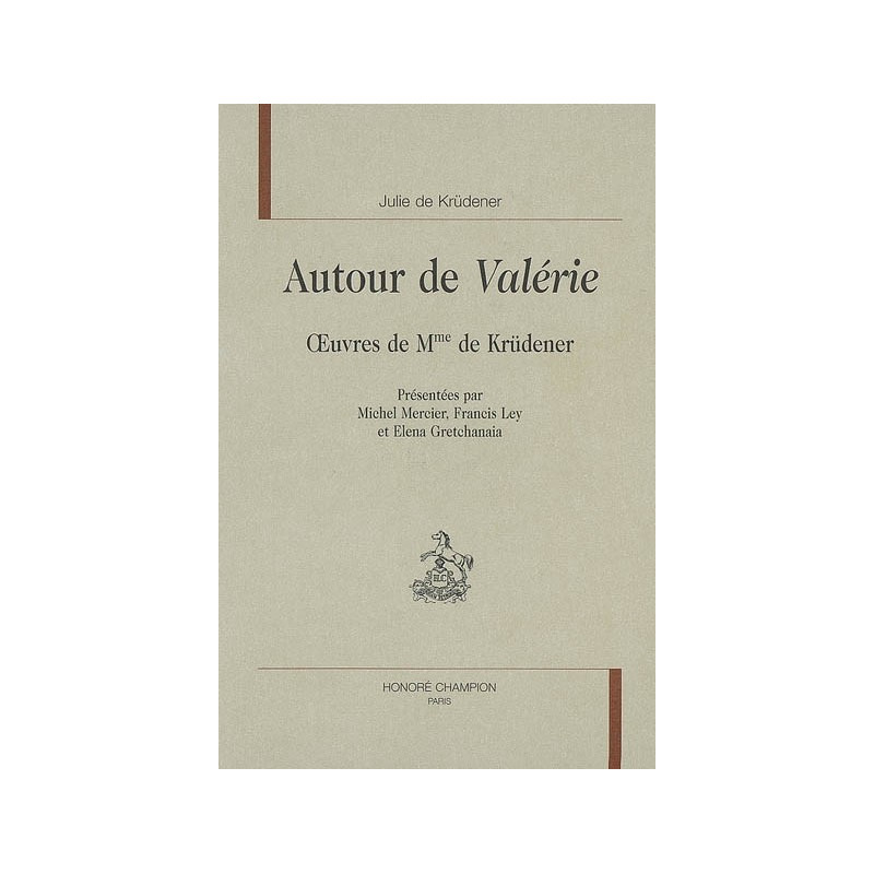 Julie de Vietinghoff, baronne de Krüdener (1764 1824), descendante de chevaliers teutoniques et du maréchal de Münnich, adopta dès l'enfance le français comme langue maternelle et pouvait écrire à Mme de Staël : " Je regarde la France comme ma véritable patrie ". Ses " Pensée et Maximes " furent publiés au Mercure de France en octobre 1802 et introduites fort joliment par ces mots de Chateaubriand : " Quand on pense avec autant de délicatesse, on a raison de choisir, pour s'exprimer, la langue de Sévigné et de La Fayette ". Son roman " Valérie ", qui eut un grand succès, vit le jour en décembre 1803 à Paris. Sainte Beuve le salua, plus tard, dans ses " Portrais de femmes ", d'une formule lapidaire : " Dans cette langue préférée, elle nous envoyait un petit chef-d'œuvre… " et de nos jours encore, Jean Gaulmier pouvait écrire : " Valérie, roman confidence où, avec une sensibilité déjà proustiennne, Mme de Krüdener a magnifié l'étrange et soudaine perfection de la mémoire affective ". Tout cela a été revu et plus complètement explicité par les travaux de Michel Mercier, Francis Ley et Elena Gretchanaïa, qui a retrouvé dans les archives de Moscou les précieux inédits publiés ici pour la première fois.