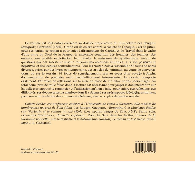 This volume contains the preparatory files of Zola’s writings Germinal which are part of Emile Zola’s novel cycle Rougon- Macquart.