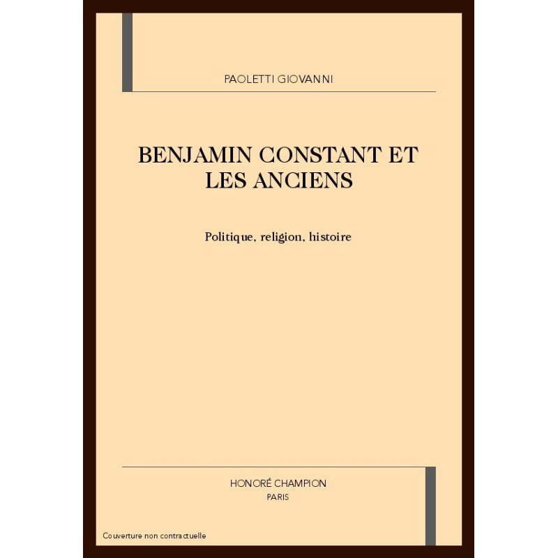 BENJAMIN CONSTANT ET LES ANCIENS. POLITIQUE, RELIGION, HISTOIRE