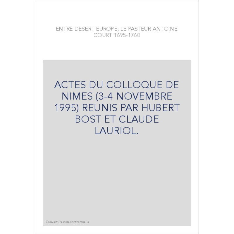 Actes du colloque de Nîmes (3-4 novembre 1995), recueillis par Hubert Bost et Claude Lauriol